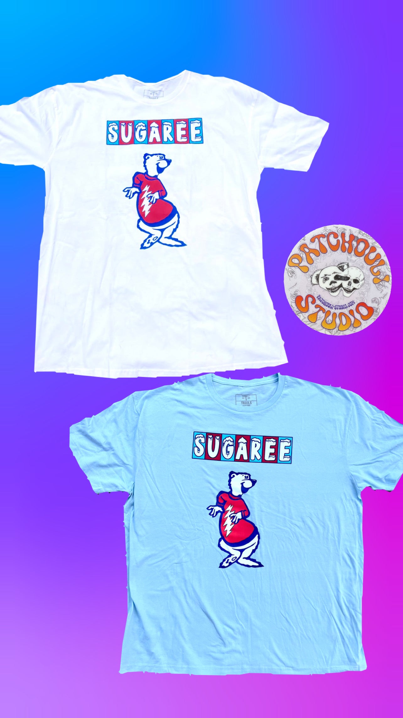 We've restocked a small amount with Front design ONLY. Sugaree Icee polar bear with lightning bolt sweater shakin it to Sugaree !!