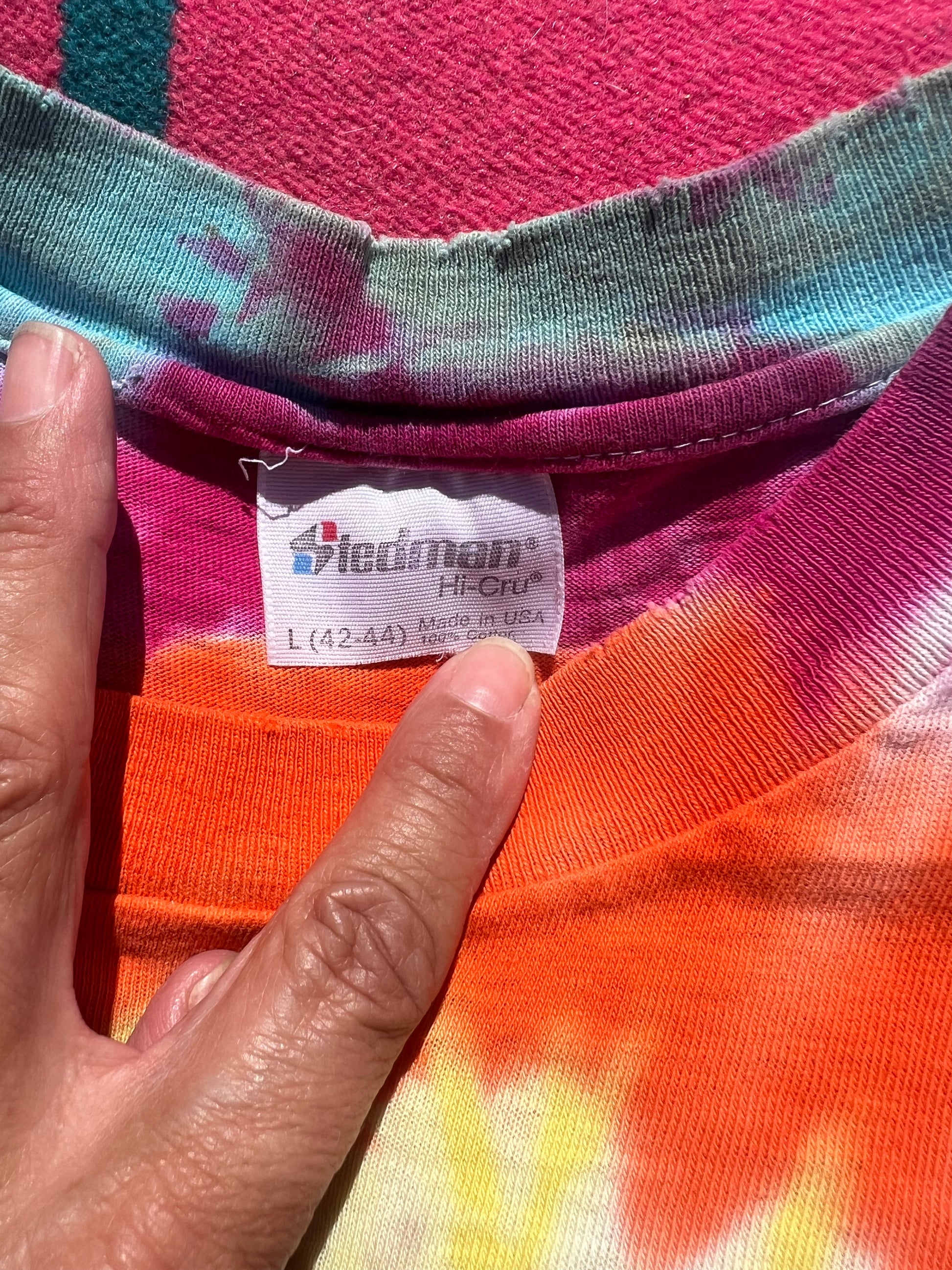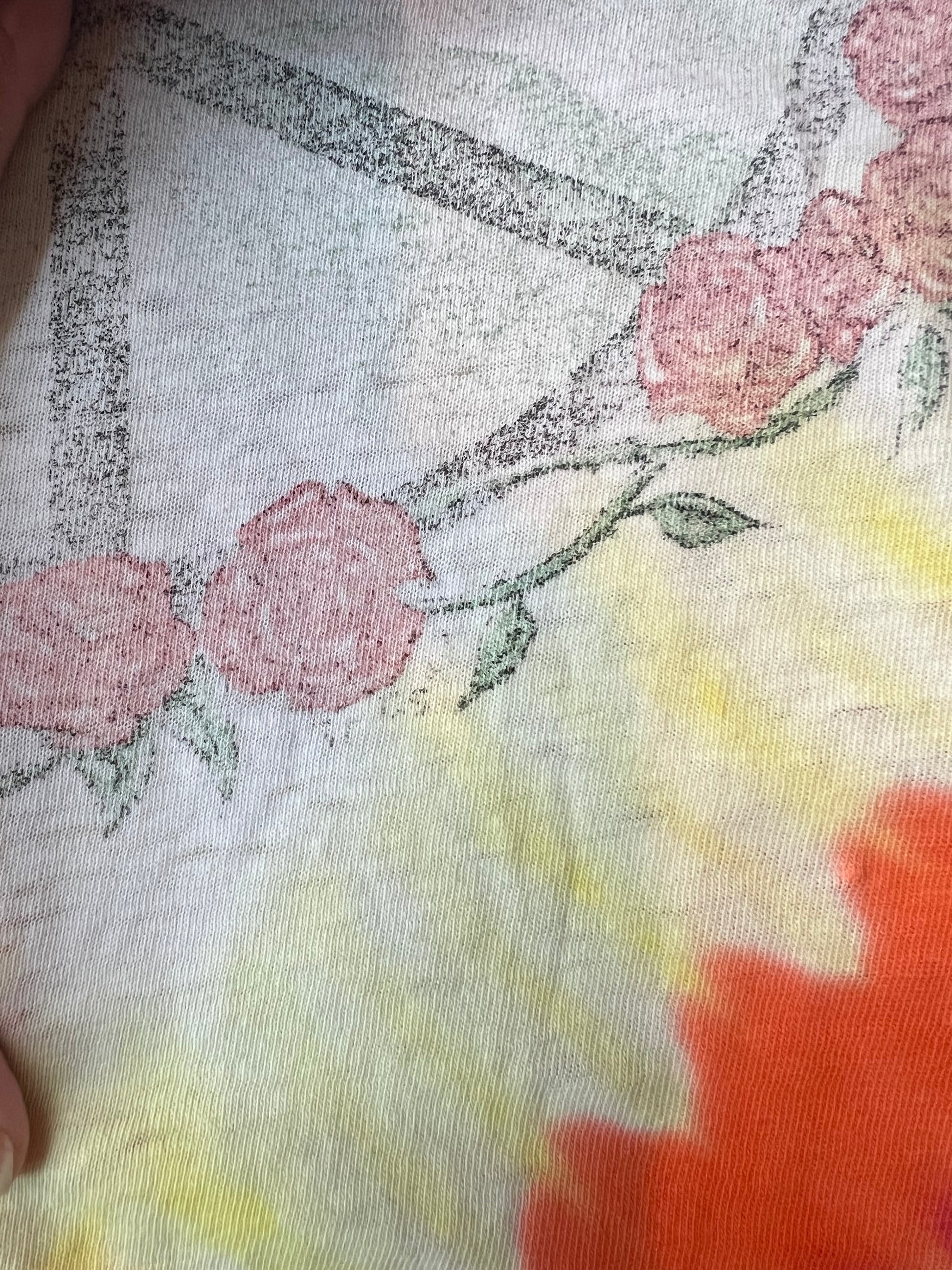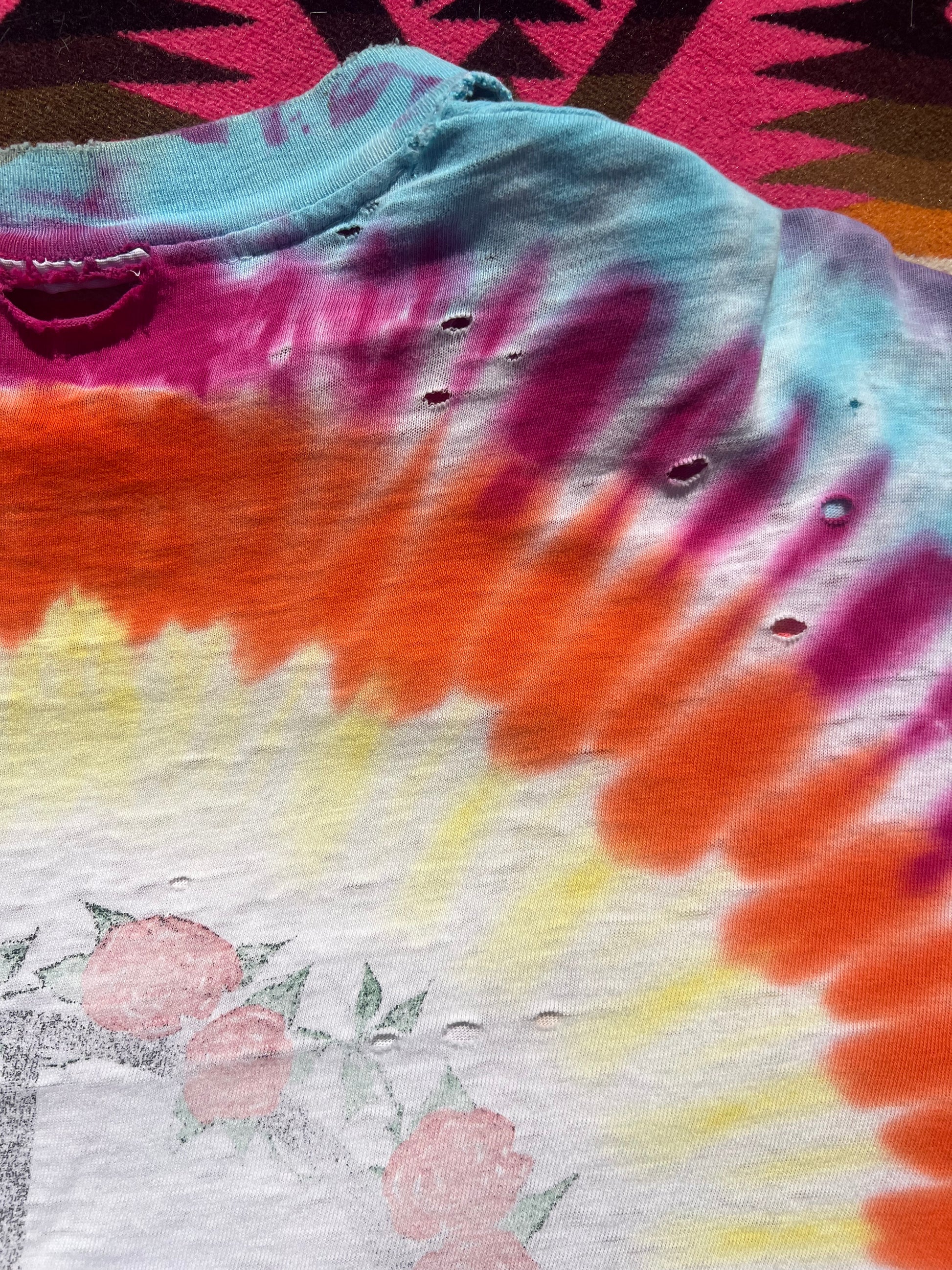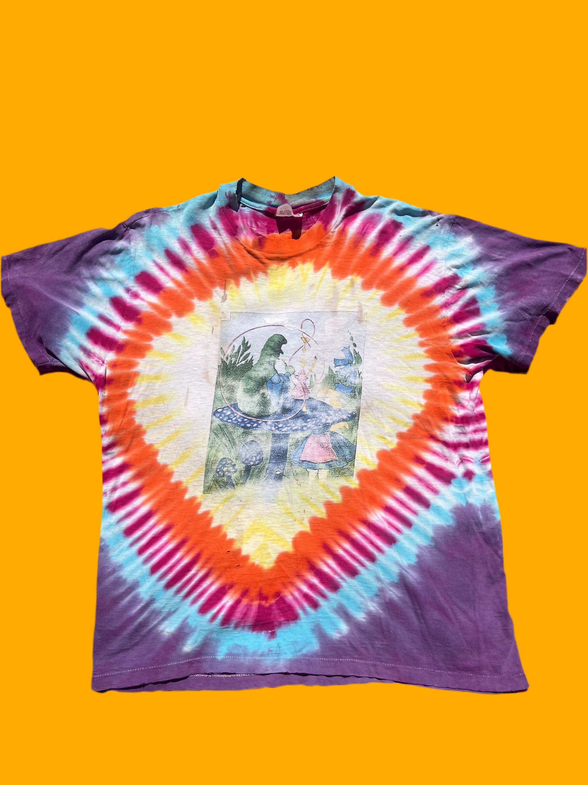 Vintage 1986 Alice in Wonderland Tie Dye with rose covered Peace sign shirt