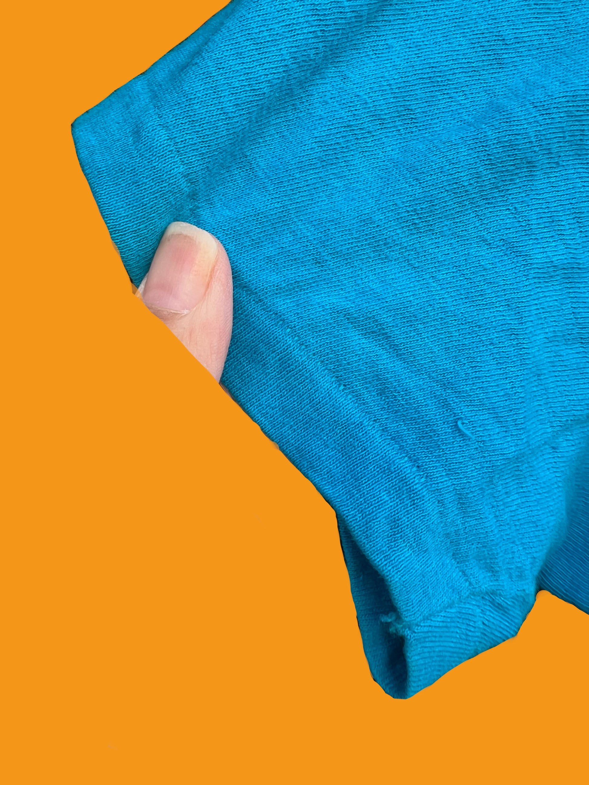 Size Medium. Hanes tag. Single stitch. Made in the USA. 100% cotton.